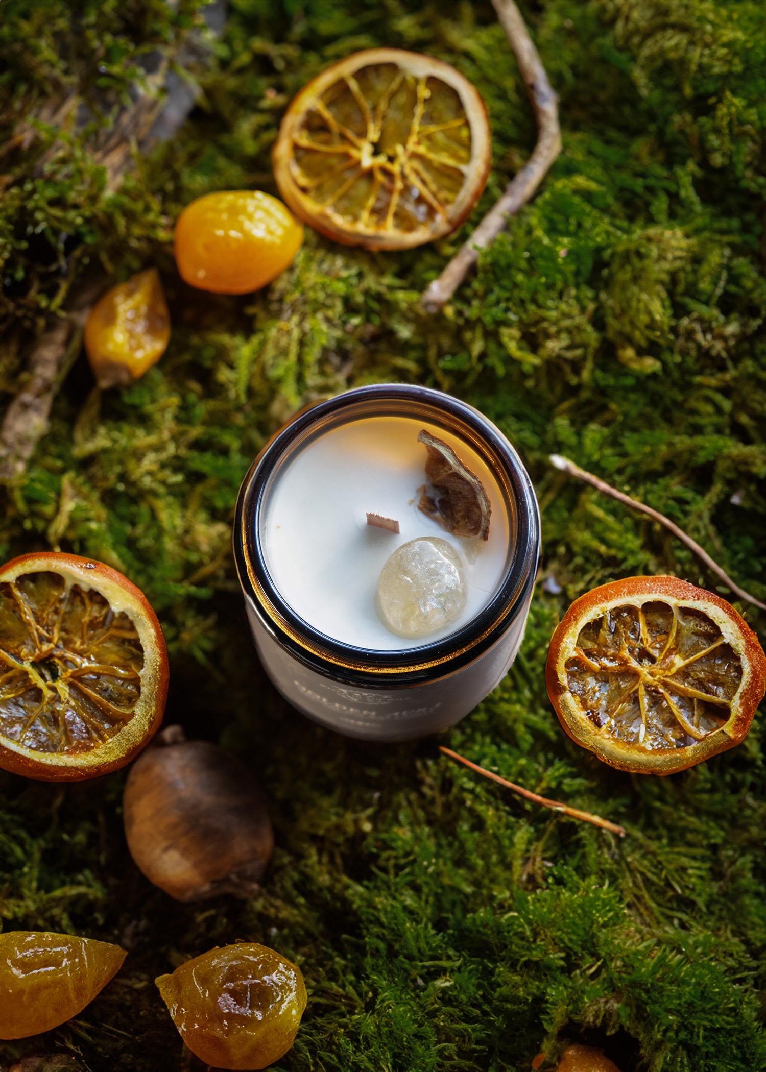 2. Light & Breathe ☾ As the candle burns, inhale deeply and allow the uplifting fragrance to clear away negativity and fill your space with vibrant energy.